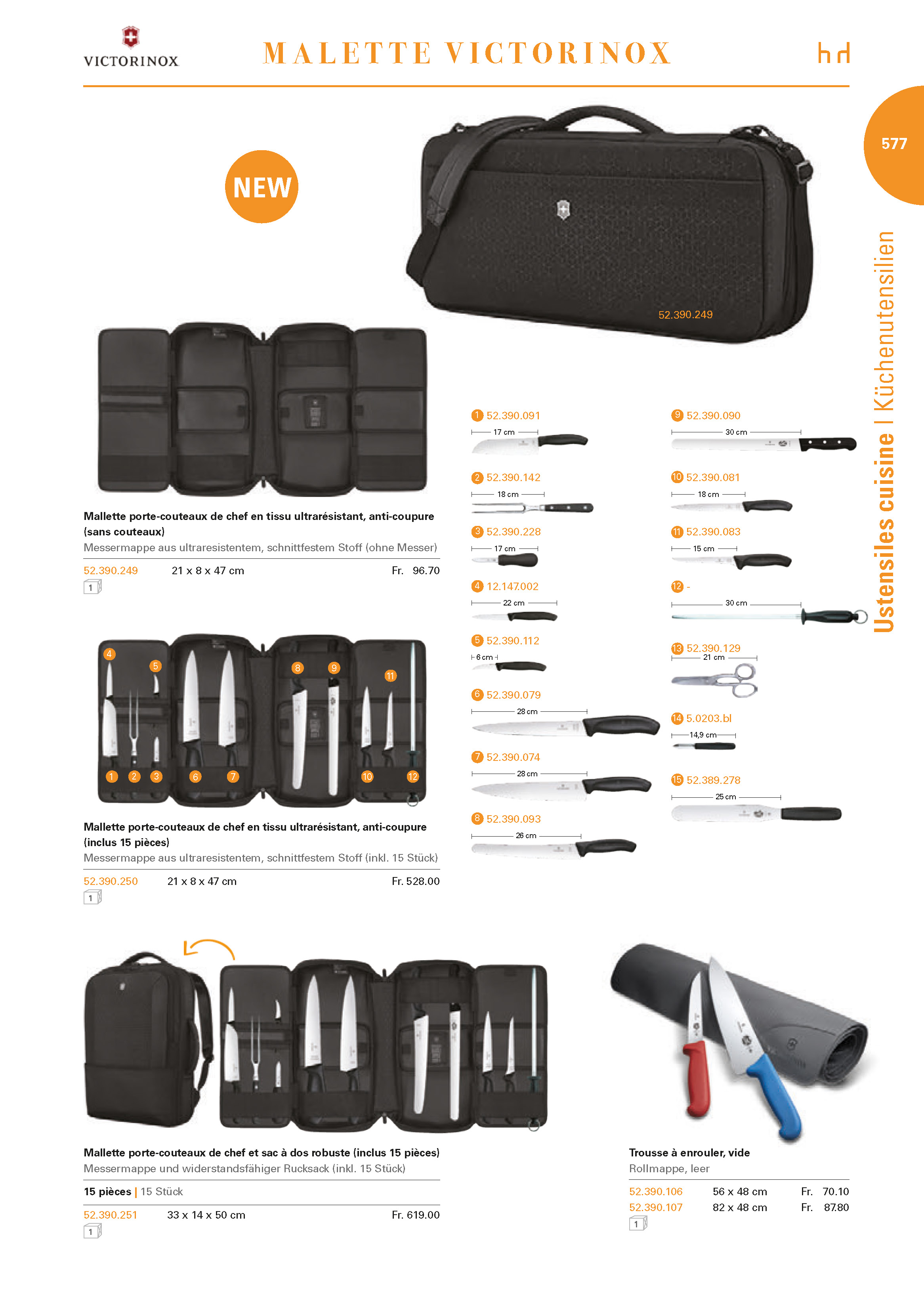 Trousse %u00e0 enrouler, videRollmappe, leer52.390.106 56 x 48 cm Fr. 70.1052.390.107 82 x 48 cm Fr. 87.80Mallette porte-couteaux de chef en tissu ultrar%u00e9sistant, anti-coupure (sans couteaux)Messermappe aus ultraresistentem, schnittfestem Stoff (ohne Messer)52.390.249 21 x 8 x 47 cm Fr. 96.70Mallette porte-couteaux de chef en tissu ultrar%u00e9sistant, anti-coupure (inclus 15 pi%u00e8ces)Messermappe aus ultraresistentem, schnittfestem Stoff (inkl. 15 St%u00fcck)52.390.250 21 x 8 x 47 cm Fr. 528.00Mallette porte-couteaux de chef et sac %u00e0 dos robuste (inclus 15 pi%u00e8ces)Messermappe und widerstandsf%u00e4higer Rucksack (inkl. 15 St%u00fcck)15 pi%u00e8ces | 15 St%u00fcck52.390.251 33 x 14 x 50 cm Fr. 619.00NEW52.390.24910 52.390.0819 52.390.09012 52.390.14714 5.0203.bl15 52.389.27811 52.390.08325 cm18 cm15 cm30 cm21 cm13 52.390.12914,9 cm1 52.390.0912 52.390.1423 52.390.2284 12.147.0025 52.390.1126 52.390.0797 52.390.0748 5.2930.2617 cm17 cm22 cm6 cm28 cm28 cm26 cm18 cm1 2 3456 78 910111230 cm577M A L ET T E V ICTOR I NOXUstensiles cuisine I K%u00fcchenutensilien